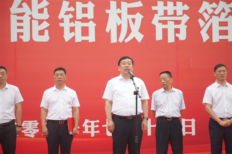 儀式上,王軍偉介紹項目情況。義瑞新材年產(chǎn)70萬噸高性能鋁板帶箔項目是明泰公司繼“1+1熱軋項目”、“電子材料產(chǎn)業(yè)園項目”、“明晟超硬材料項目”之后,實施的又一精品亮點工程。該項目以高標準建設(shè)熱軋生產(chǎn)線、立體智能倉庫以及自動化冷軋、箔軋生產(chǎn)線,打造數(shù)字智能一體化的高科技智能化工廠。開拓軍工、航天、交通、新能源、新材料等新領(lǐng)域,實現(xiàn)產(chǎn)品升級換代。